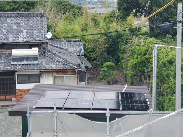 掛川市浜野K様倉庫屋根上太陽光 掛川市K様の敷地内にある倉庫屋根上への太陽光設置工事を行いました。 こちらのお客様はFIT(電力固定買取制度)のご利用ということで、電力等の申請も弊社で行いました。 屋根上はパネルを置くスペースがないけど倉庫がある!といった方も、一度弊社の作業員が現地調査を行い 屋根の大きさや向き、屋根材などを考慮してご提案をさせて頂きます。
