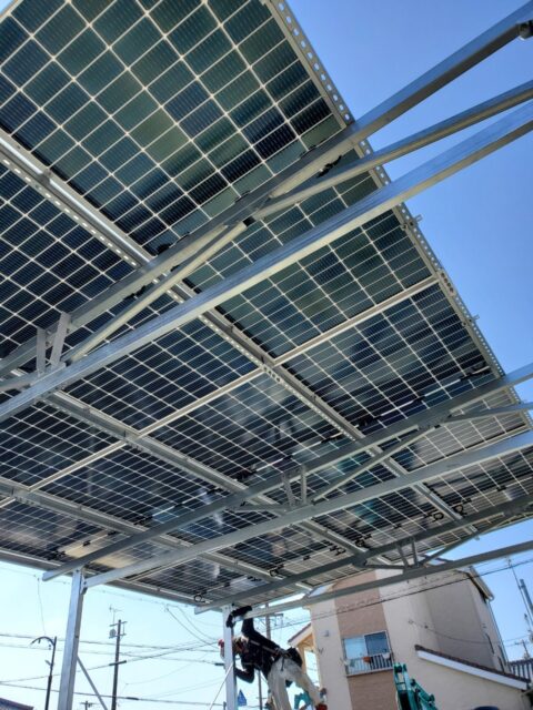 ガレージ設置型よりも広範囲にわたって太陽光パネルを設置したのでかなり大きめですが、